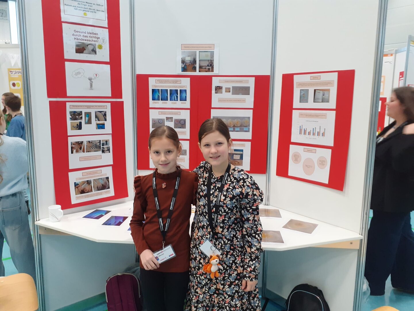 Mina und Laura forschten zu Keimen, Bakterien und Viren und dem "richtigen Händewaschen".