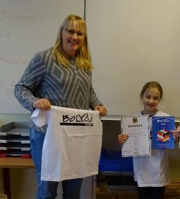 Alle Teilnehmer erhielten eine Urkunde, eine Broschüre mit Knobeleien und auch ein kleines Knobelspiel als sogenannten „Preis für alle“ – „Das Baumeisterspiel“.